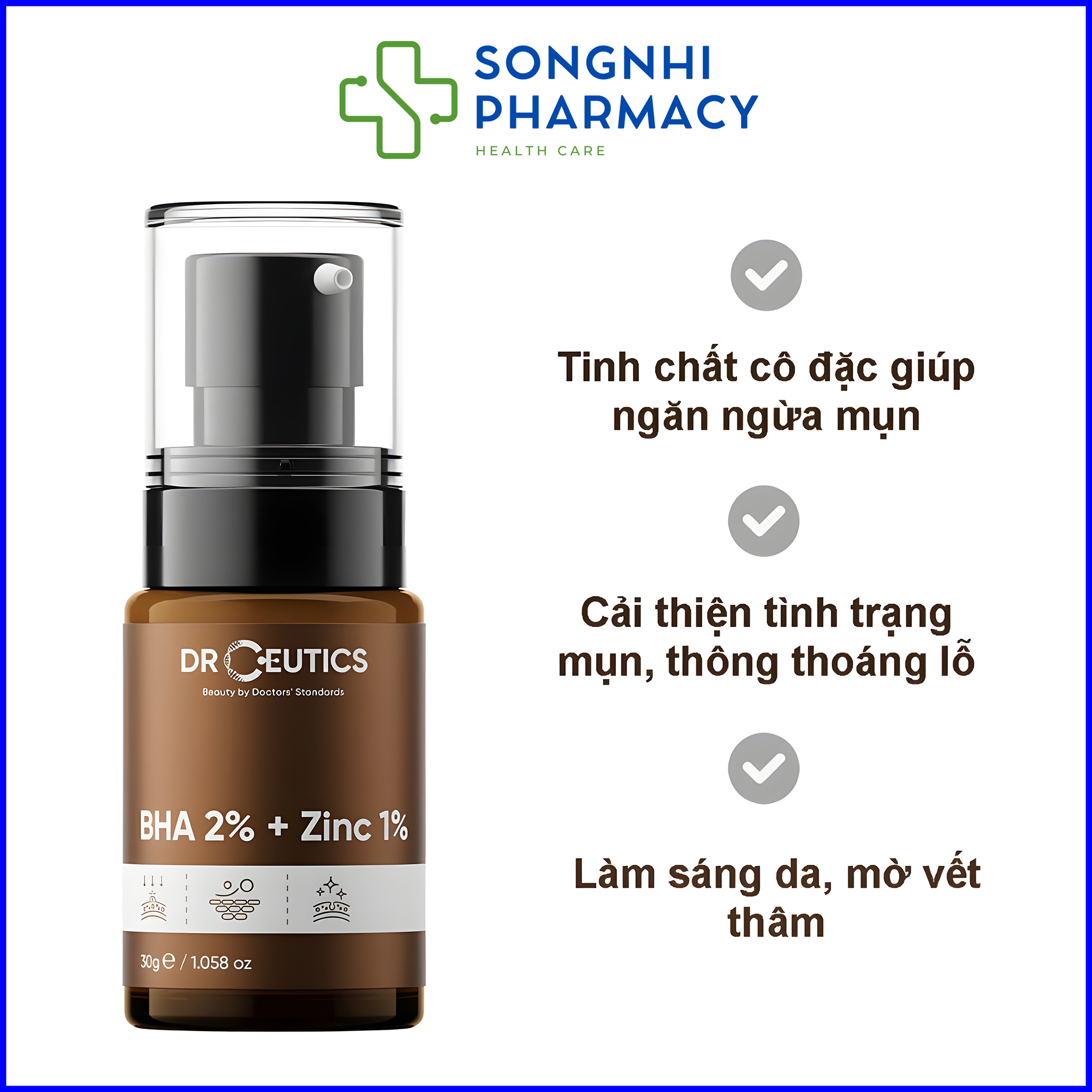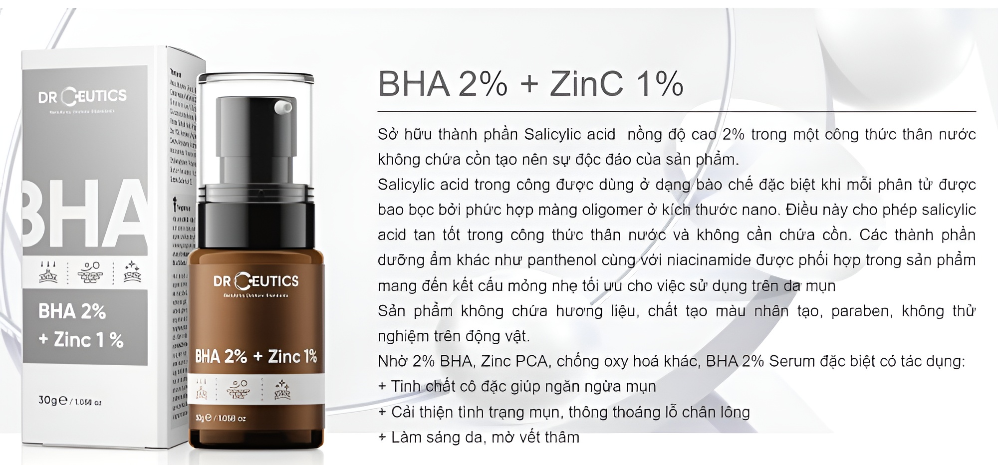 BHA DrCeutics BHA 2% + ZinC 1% – DrCeutics BHA 2% – Serum Giảm Mụn Và Giảm Tiết Dầu cho da mụn